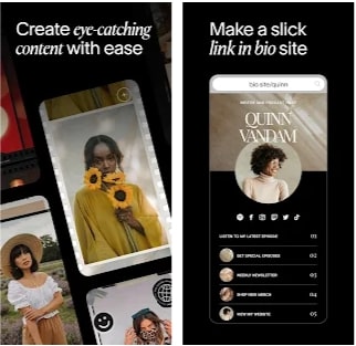 You may know this app from the PC version. The application is now available for mobile devices as well. So, Canva is a powerful tool for creating stories and posts with graphics. There are hundreds of ready-made graphic templates, collages, and banners available. All of these you can easily customize according to your taste.