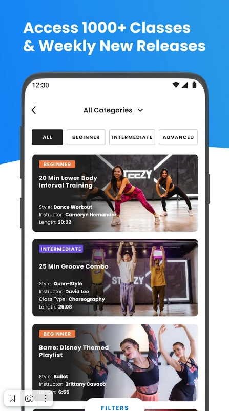 With its easy-to-follow videos, step-by-step instructions, and expert guidance, you’ll get to perform all the latest dance crazes with confidence and flair. To get into details, the app covers over 800 classes, so you’ll never run out of new styles to explore. The app boasts an extensive selection of classes to suit both newbies and pros. Regardless of your level of expertise, there’s a class tailored to your needs and prefs.