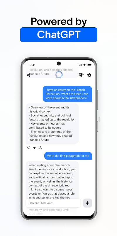 That’s a ChatGPT-integrated app designed to amplify your writing skills and streamline the search for information. It’s a blessing for students and professors alike, as it helps to quickly find the info of any kind. But what sets this one apart is that it encompasses a voice chat that can answer any question on your mind. Whether you’re looking for writing tips, research ideas or even personal advice, this app is an absolute game-changer.