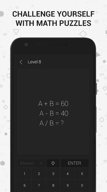 As for the mechanics, you’ll need to solve patterns between numbers in geometrical figures and complete the missing ones at the end. Each lvl is suitable for both adults and kids, making it great way to bond with your family and friends.