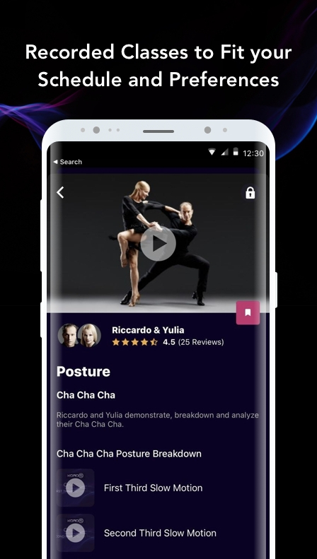 And if you can’t make a live class, don’t worry, there are plenty of prerecorded classes available, all taught by the experts. Plus, the app offers on-demand slow-motion demonstrations and an analysis of the World Champions’ own dancing, and daily tips to help elevate your skills even further.