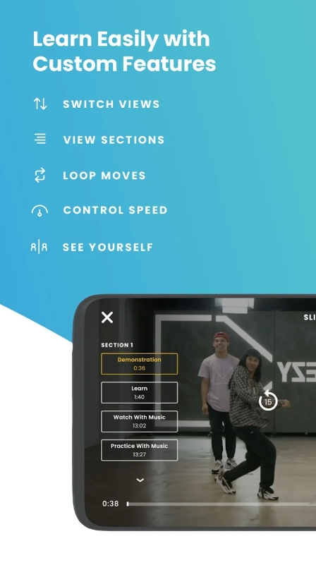 And, if you’re feeling stuck, the step-by-step dance analysis is undoubtedly going to help you learn the movements way easier. One of the app’s most distinctive features is a smart technology, that lets you learn from different angles. The teachers demonstrate moves from all the angles possible to make sure you’re getting it right.