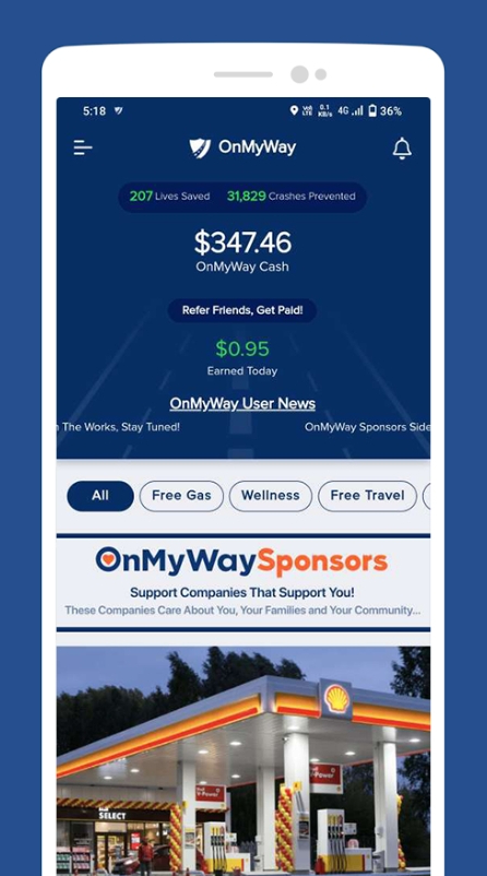 This app takes safety seriously, it runs silently in the bg and all you need is to keep your device locked while on the road. If you do, you’ll quickly start, and you’ll start earning cash cards, free gas, discounts, and all that.