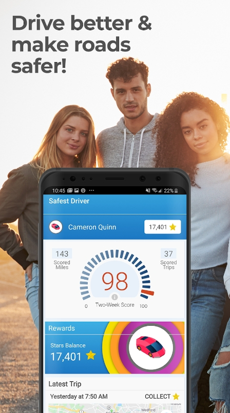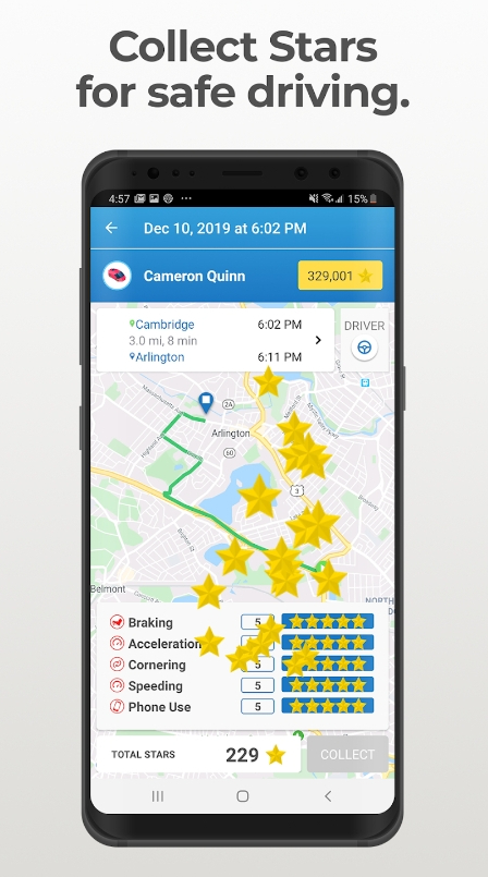 After each trip, you’ll receive detailed feedback on areas where you can improve, such as phone distraction, braking, and speeding. Before you know it, you’ll be a pro behind the wheel and easily earn those coveted stars. Speaking of those, you’ll actually get rewarded for safe driving.