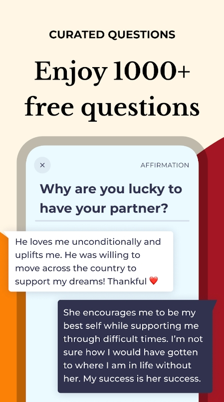 The app is designed to cover all types of connections: be it newly engaged pairs or seasoned partners looking to add a spark to their love. With access to additional free resources from the app, you will have even more tools and interactive activities to nurture your connection.
