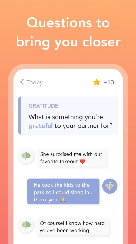 The questions are a great way to spark convos and learn more about one another. Plus, you’ll get to see each other’s responses only after you’ve both answered. It’s like a little surprise every time! But that’s not all, the app also offers guidance specialists, interactive activities, and weekly quizzes if needed.